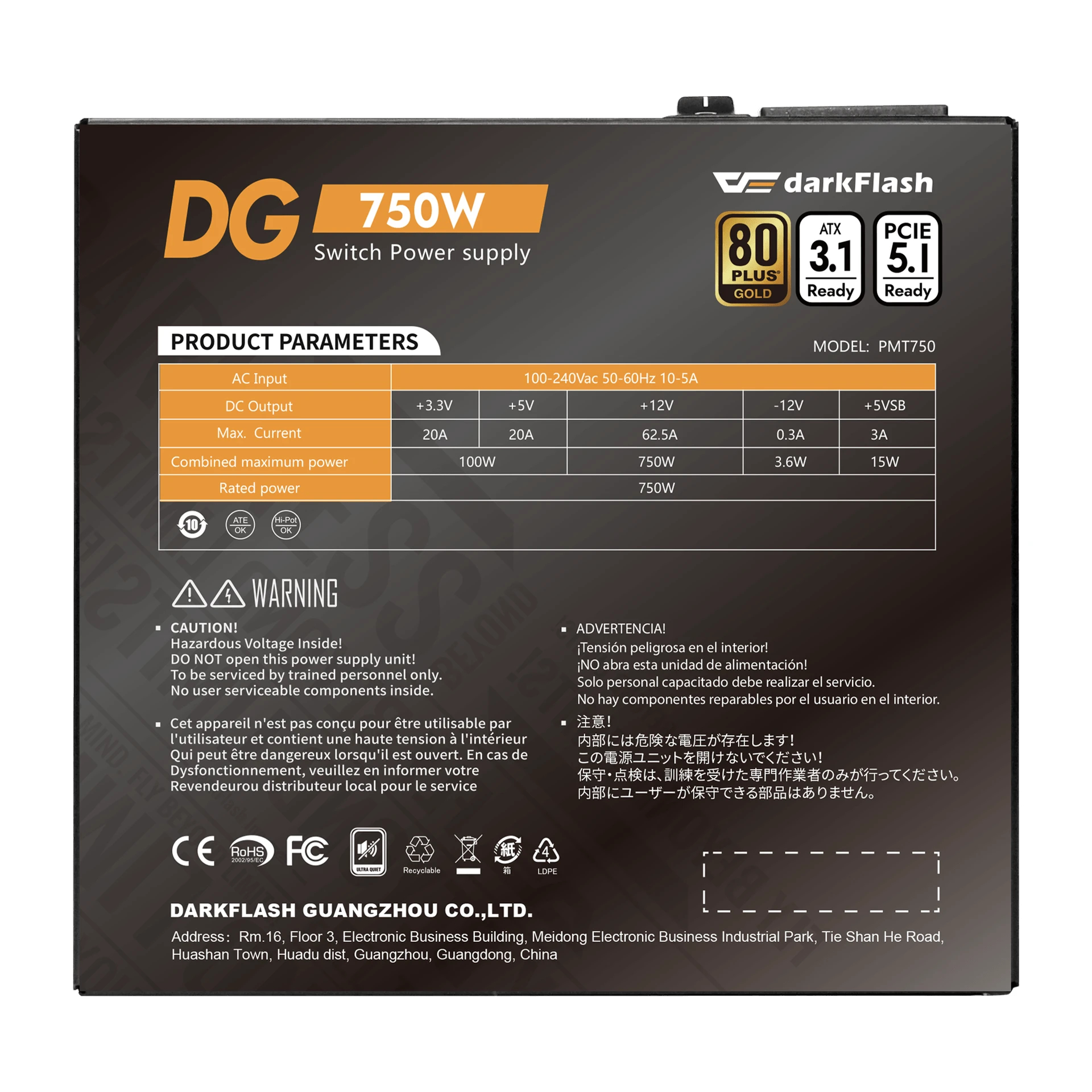 Darkflash захранване PSU ATX 3.1 750W Gold, Full Modular – DG750
